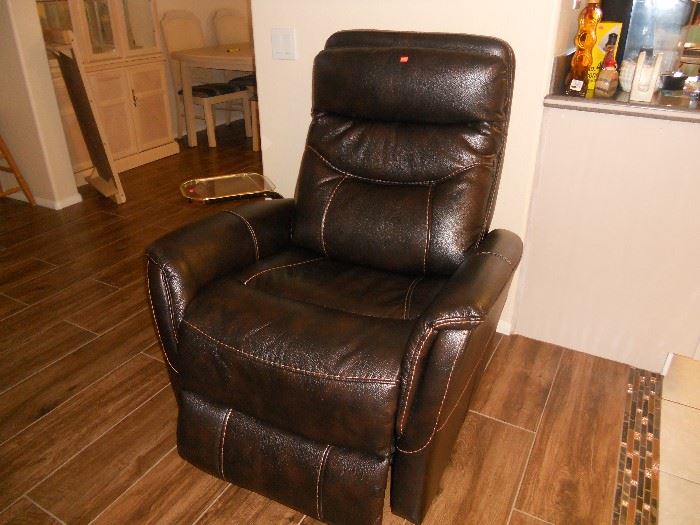 Microfiber rocker/recliner; microfiber sofa. White leather swivel rocker/recliner. Two matching electric (battery and charger) rocker/recliners. Queen leather sleeper loveseat with air pump mattress. Coffee table with two matching end tables; hall table. 55” Visio flat screen. TV stand. Beautiful lamps; pictures. Dining set with four chairs, one leaf, and matching hutch. Dining/kitchen set with six chairs. Small appliances, including Keurig, Pur water filtration system, and The Champion Juicer. Four matching stools. King bed with PosturPedic plush pillowtop mattress, box spring, and frame. Queen pier group with matching triple dresser/mirror and one night stand; queen mattress, box springs, and frame. Chest...