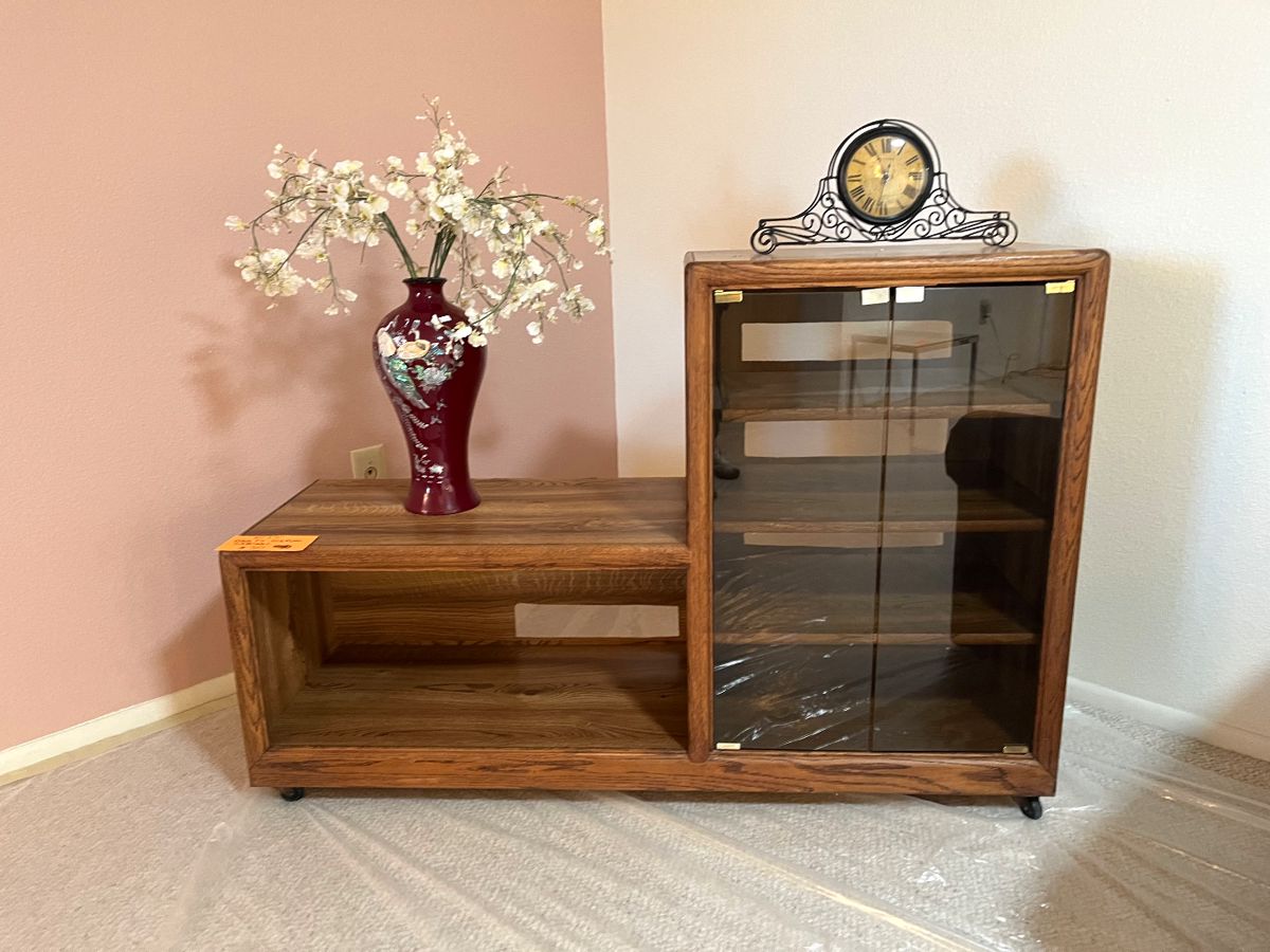 Minimalist style decor with just what you need for your household. HIGHLIGHTS: - Yamaha Clavanova electric piano ELP-130 FURNITURE: - Red Lazyboy sofa 7’ x 36” x 36” - Tan bonded leather loveseat - Tan bonded armchair - Glass top metal base coffee table 47” x 23” x 17” - 2 Matching end tables - Glass top chrome end table 24” x 24” x 18” - Mid Century walnut end table with drawer - Oak TV media cabinet with storage 54”. 17 - Walnut bookcase 32” x 13” 30” DINING ROOM FURNITURE: - Dixie dining room table with 4 chairs...