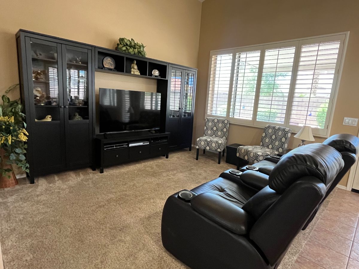 This is a beautiful, extremely clean home filled with many quality items including: Beautiful 5 1/2 Foot Hand Carved Indian Woman Statue from Dubai, Gorgeous Bedouin Middle Eastern Brass Accents Chest/Trunk, Austrian Ernst Fuchs Etchings, Queen Adjustable Bed, NICE Liberty Furniture Dresser with Mirror and 2 Nightstand's, 2 Leather Electric Reclining Chairs, Vintage Butlers Tray Table, NICE Daybed with Trundle, Patio Table with 4 Chairs, Beautiful Kitchen Table with 4 Chairs, Plant Stands, Thomas Kinkade Artwork, Middle Eastern Decor, Many Persian Rugs, German Books, Black Entertainment Center, Asian Decor and Lamps, Eagle Collection, TCL 58" Smart TV, Two Vizio 42"...