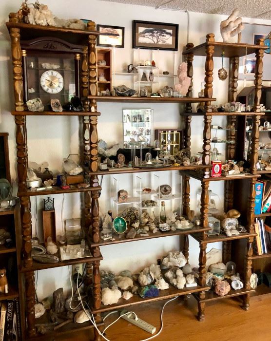 Giant rock and mineral collection, book collection, records, Mexican and Native American art and pottery, large Clock collection,