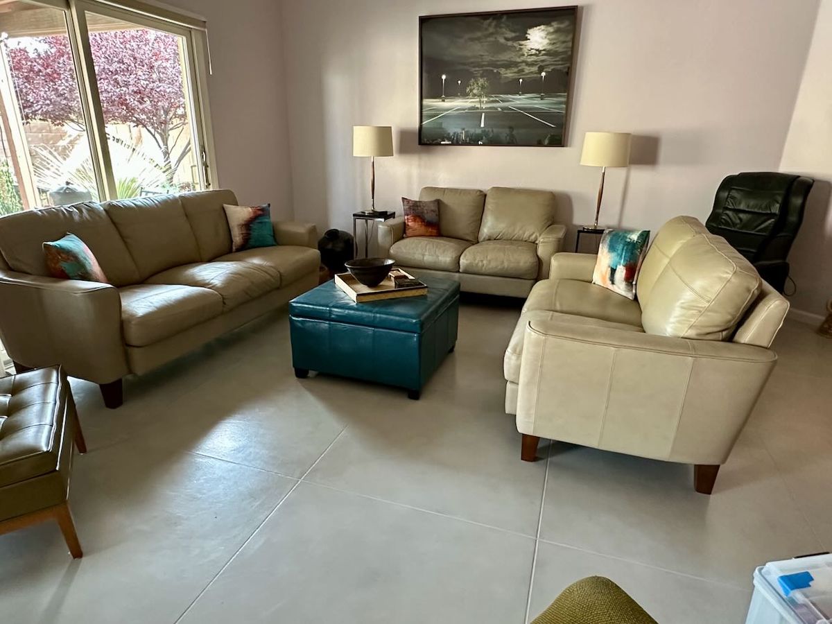 Vintage MCM Chairs, Modern leather sofa and 2 love seats, Fine art, Mexican pottery and figurines, South American wool textiles,