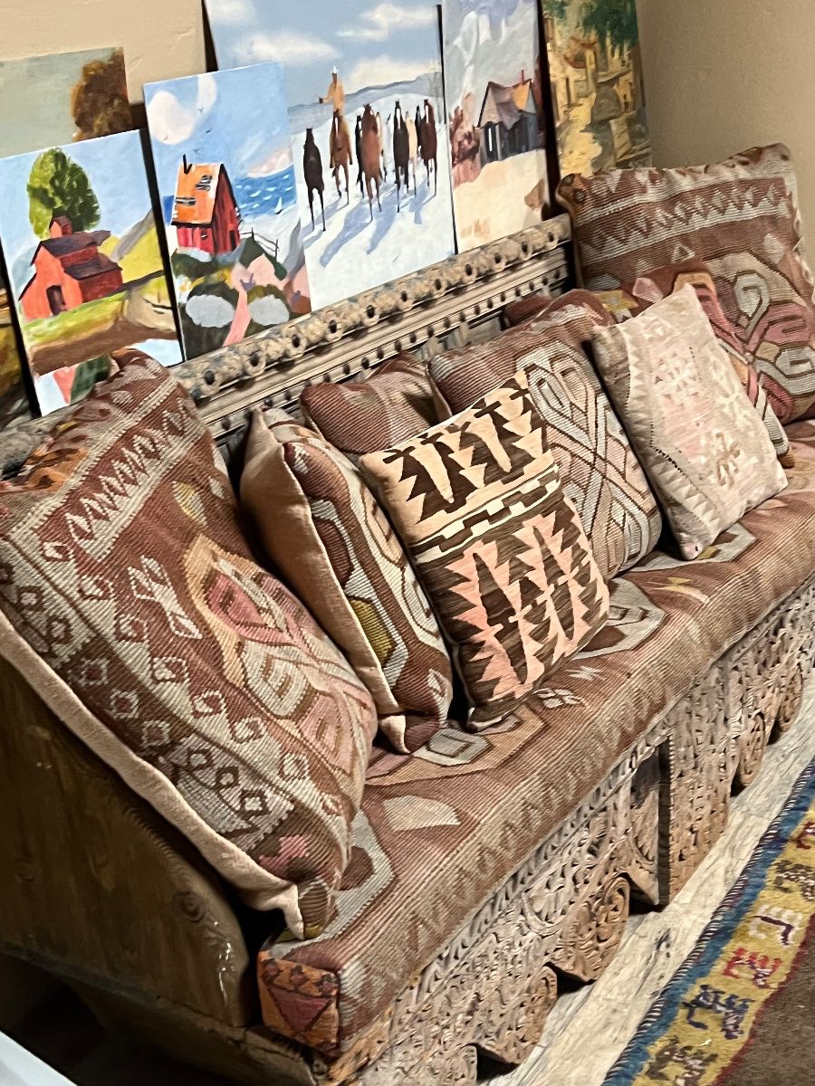 3 Houses on property full of decor and art beautifully curated by an avid luxury collector. Large Handwoven Rugs, Seret and Sons Kiln/Santa Fe and Ralph Lauren Home Sofas and Chair, Marge Carson Bedroom Suite, Pendleton Blankets, Original Art, Native American Decor, Majolica Ceramics, Botanical Dishware, Vintage Linens, Chippendale Dining Chairs (10), Antique Pine Beds and Tables, Luxury Bedding, Custom made Benches, Large Leather Living Room Chairs, Vintage and Antique Decor, Outdoor Patio Furniture, Clay Pots. Full liquidation of 3 home on property.