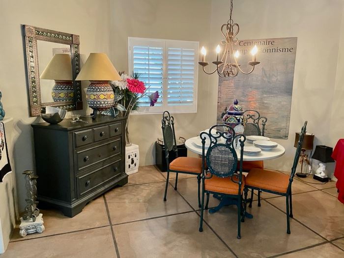 Art, tons of decor items, eclectic lamps, tables, African bed art, patio furniture and decor, costume jewelry and fine jewelry, designer clothing and lots more!
