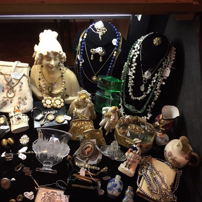 Partial listing of items to be sold: Dining room table & chairs, China / Display cabinet, sofa table Lalique vase & bowls, Moser vases, asst. crystal vases – bowls – dishes, Limited edition Lladro porcelains, Bronze elephant & giraffe. Wood carousel horse, Turquoise -coral squash blossom jewelry, Chanel earrings & scarfs, Vuitton - Rachel Zoe - Coach & Gucci purses, Fine jewelry Loads of necklaces, earrings, watches, stick pins & bracelets Custom made curved sofa, Chinese jewelry chest inlaid with mother of pearl, Antique clocks, maritime items, Entry mirror, Chinese four panel screen, Art Deco pedestal & table, geodes, minerals,...