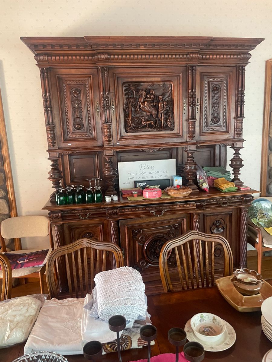 Fully furnished home on gorgeous property. Excellent quality modern, md-century furniture, w 19th Century French Renaissance hand carved sideboard buffet, formal dining table with removable sections, large screen modern tv's, nice3 audio equipment, Danish modern bedroom furniture, teak furniture, large area rugs, vintage audio equipment including 18' bass 60's speaker and AR 60's turntable, Italy travertine table Italian sofa and loveseat, modern lounger, Art Deco Velvet plush sofa, side chairs, modern Rosewood Dining Table, Modern Greek Pattern area rug, nice area rugs, lots of art, painting, serigraphs, lithographs, lamps, clocks, China sets, stemware, autographed baseball hats, autographed helmets, lots of...