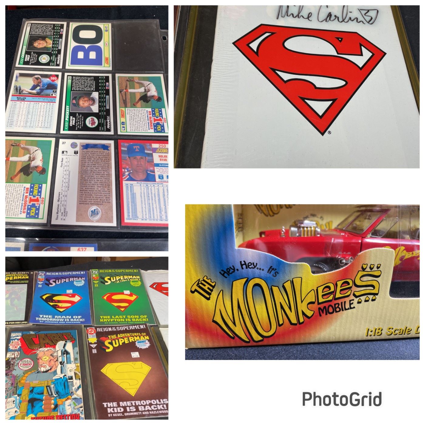 Great collection of diecast cars, planes, rare items from a lifetime of collecting.  Some sports trading cards and rare comics in plastic.