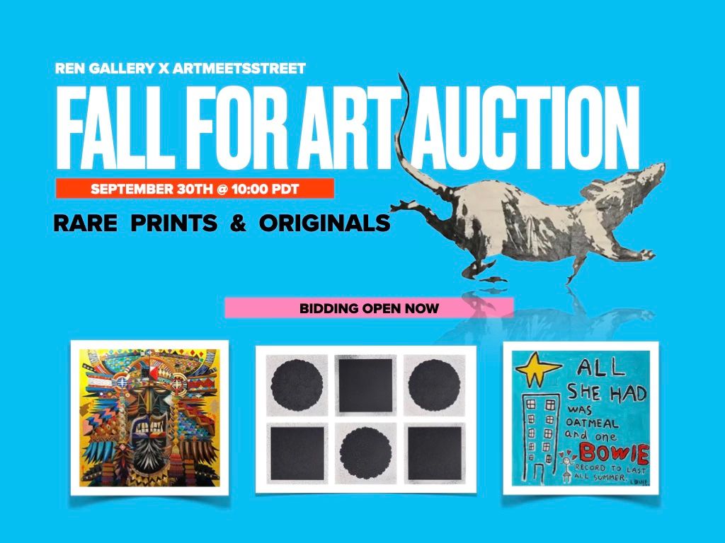 Over 400 lots in our biggest Fine Art auction to date! ArtMeetsStreet is thrilled to partner with Ren Gallery, Los Angeles for this upcoming special auction. The Ren Gallery is one of the premiere art galleries located in the Arts District in downtown Los Angeles. They are known for cutting edge shows with some of the most prominent contemporary artists in Los Angeles. The online auction will feature an array of works by some of the most eminent artists of today including Banksy, Invader, Damien Hirst, Con Artist, Bambi, Ai WeiWei, Kaws, Martin Whatson, Mr. Brainwash, Denial, Imbue and many...