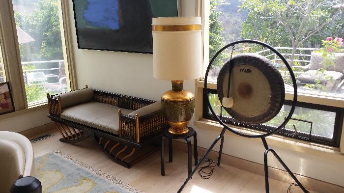 More items unpacked from closets and garage...Photos have been updated. Owners are down sizing...Something for everyone! A wide variety of items including art by Marvin Markman, Shepard Ferry, Steve Kaufman, Romero Britto, Burris Jenkins as well as sports collectibles: autographed Walter Payton jersey, autographed Kevin Brown uniform and more. Furniture from Pace Collection: classic over-sized swivel chairs, large chair, glass end table and matching glass breakfast table. Custom furniture pieces such as an exquisite granite dining table with unique chairs. Sterling Arrowsmith candelabra, vintage Tye of California lamp, vintage Fiesta dinnerware, large Tufenkian rugs, outdoor furniture, ping pong table, Paiste...