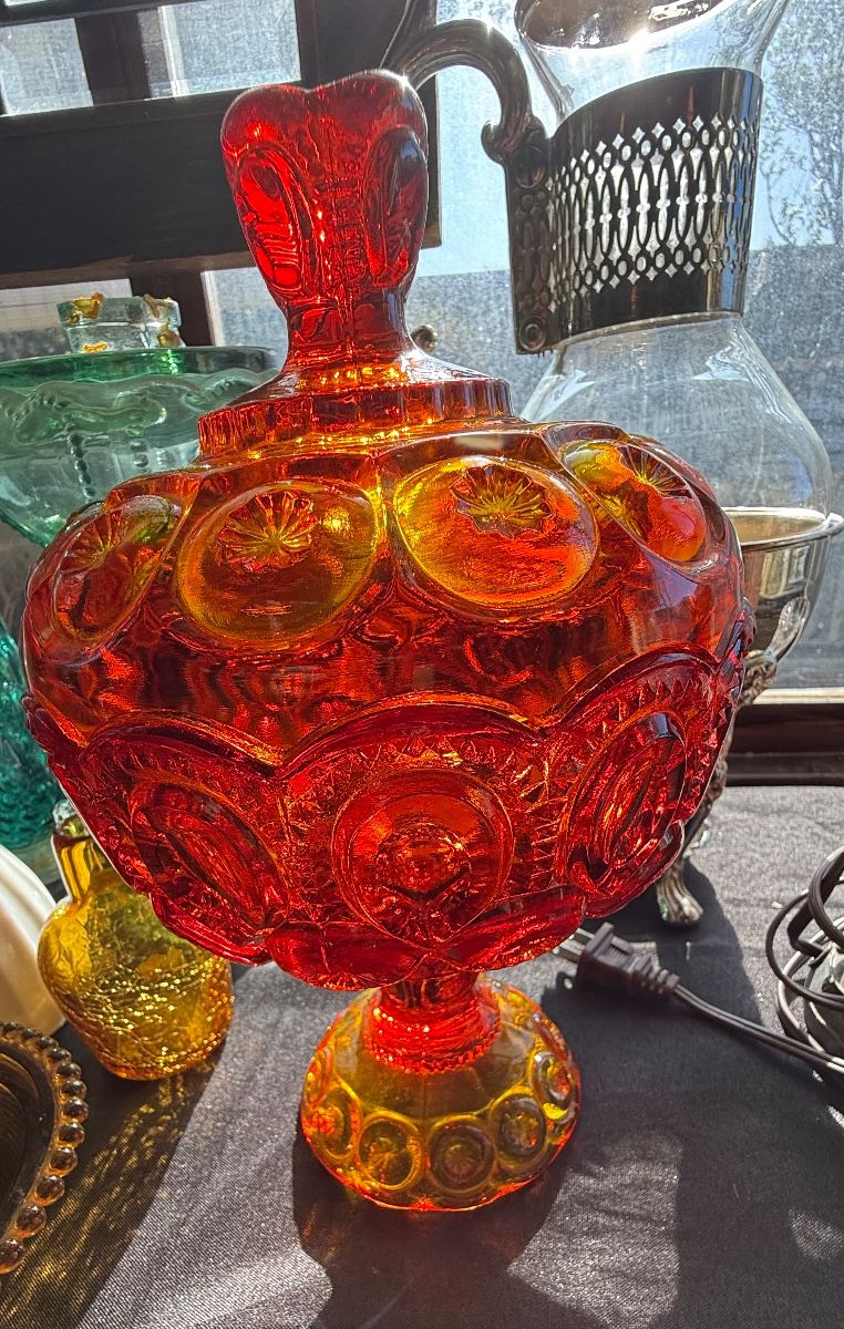 Vintage everything:colored glass, Smith moon and Stars,Cameras,Corning ware,Christmas,Dresser’s,Vanity,Crafting and beading supplies,Vinyl records,Women’s clothes,Belts,Jewelry,Boots, Maniquins Tea pots,purses, electronics, Yard art, Slag glass lamp, tools, and tool boxes and much more!