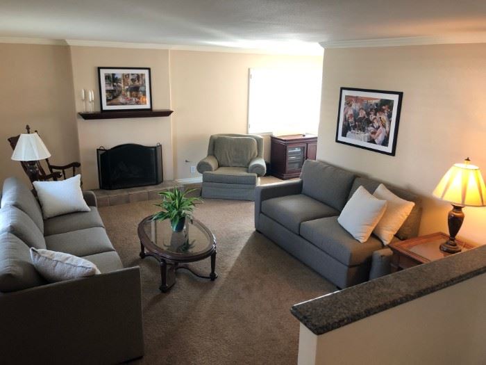 WE ARE NOT OPEN ON FRIDAY!!! WE ARE NOT OPEN ON FRIDAY!!! WE ARE NOT OPEN ON FRIDAY!!! WE ARE NOT OPEN ON FRIDAY!!! WE ARE NOT OPEN ON FRIDAY!!! Hello friends, Welcome to another Spectacular Grasons Co. Elite Estate Sale. 1st floor Grey sofa couch Grey sofa loveseat Green designed sofa chair Antique wood rocking chair Vintage oval end table Glass top oval coffee table Square with glass top end table Fireplace guard Candle stick holders m Wall picture frames art Throw pillows Vintage brown table lamps Silk plants Joy stocking holders JVC CD player Record player Sony receiver...