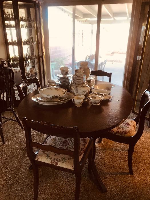 Extensive Souvenir Spoon Collection. Pewter Fantasy Figures Collection. Small China Cabinets. Antique Desk and Chair. Small Antique Dining Table and Chairs. Recliner. Vintage Sofa and Wingback Chair. Dresser. Jewelry Cabinet. Small Metal Safe. Train Decanters. Collection of Minatures. Single Refrigerator. Mikasa Stoneware Dinnerware. Glasstop Table and Chairs. Satsumu Dinnerware. Wood Carvings. Small Cabinets. Display Shelves and more! Please come to the sale! Thank you! 😎