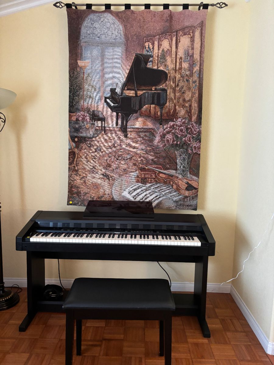 Roland kr-3000 piano, Sheet Music Cabinet, Glassware, Vintage China, Art Work, Dyson v7 absolute Vacuum, Ewave Wine Refrigerator, Small Tables, Dining Room Set and China Cabinet, DVD’S, CD’s(great music), Linens, Collectables, CD Cabinet, Lamps, Large and Middle Size TV’S, Sound System, Desk, Antique Rocker, Leather Sofa, Brass Items, BeautyRest Recharge King Size Bed, Queen size Blow Up Bed, Dresser, Pots and Pans, JacK La Lannie’s Juicer, Kitchen Round Table 4 Chairs, Pyrex, Corning Ware, Hamilton Beach Food Processor, Baking Items, Snapware, Small Appliances, Medical Items much more
