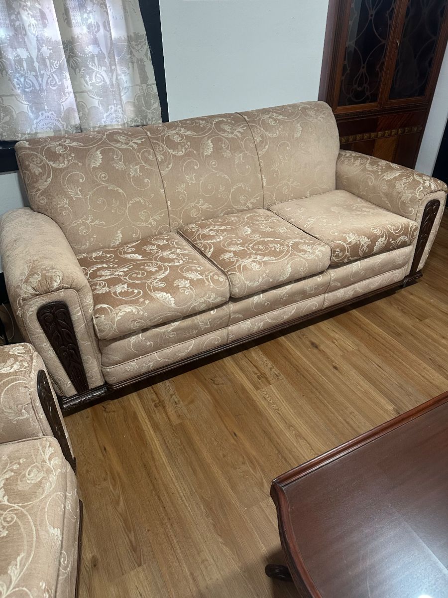French Beautifully Carved Art Deco Sofa and Chair. Upholstered in 1930’s Style Period Appropriate Designer Fabric. Fantastic Empire Sofa Gorgeous Carved Newer Period Fabric Professionally Upholstered. Mahogany Dining Set with Four Leaves /6 Chairs. Lyre side tables. Art Deco Cedar Chest W Drawer and Bakelite Handles. Several Simple Mahogany Cabinets. Large 1920’s Down Sofa Priced to sell!! Amazing Carving. Multiple small Tables and Cabinets, side tables, Sheet Music Art Deco Cabinet Smoking Stand/ Magazine Rack. Original Art. Stained Glass Floor Lamp ( Calla Lillies) with Outstanding Bronze Base, Truly Unique. Nao Figural Group Porcelain. Adding More. Watch for photos