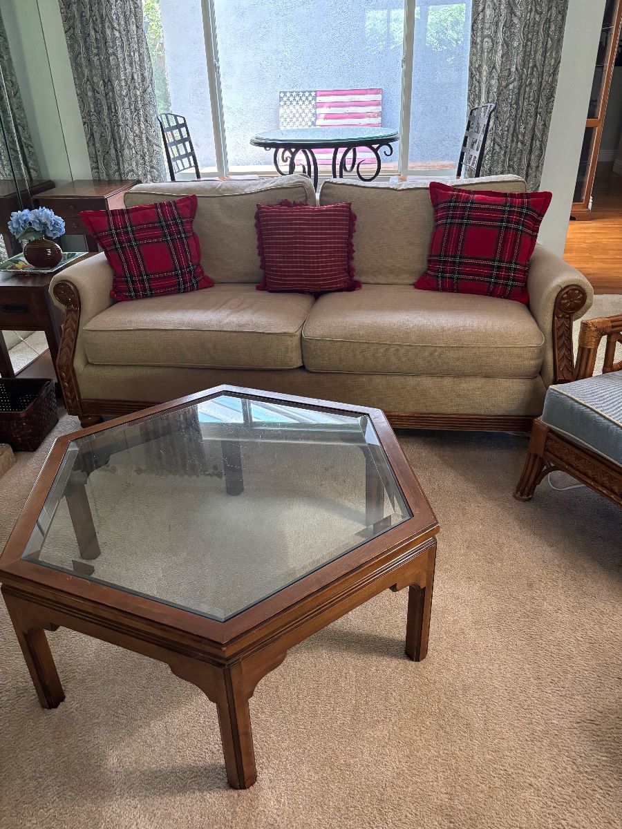 Contents of well taken care of home….immaculate! China cabinet, China, crystal stemware, collection of Pickard China, multiple curios, dining table and chairs, loads of items for entertaining, art, wine racks, sofa, chairs, coffee table, upright piano, lamps, hall tree, multiple patio sets, desk, books, printer, loads of holiday decor, bookcases, linens, bed, benchs, washer and dryer, shark vac, Maytag fridge, garage shelving, folding chairs and so much more. More pictures to follow. Home will be available for rent soon. Three bedroom, two bath, and well taken care of yard located in great neighborhood on Costa Mesa/Huntington beach border.