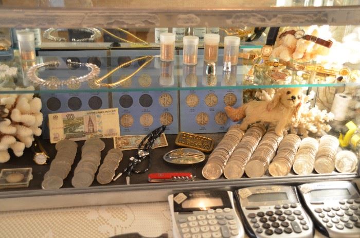 Long Time Cupertino Resident Large Coin Collection, Coin Books, Hundreds of Silver Dollars—Morgan and Peace—Watches, Antiques, and Stamps. Kimball Upright Piano. Oak Side-By-Side, Sofas, Side Chairs, Danish Modern Dressers, Nightstands, Coffee and End Tables, Lamps, TVs, Lift and Recliner Chairs, Bar Chairs, Twin Beds, Desks. Lots of Candlewick Crystal, 88-piece Noritake China Set (Chaumont), Villeroy & Boch (Botanica), Mikasa (Whole Wheat Raspberry Bouquet), Pyrex, Crystal and Glassware, Depression Glass. Watercolors, Oil on Canvas, Frames. Kitchen Appliances, General Electric No-Frost Refrigerator. Books, Records, Cameras, Slides and Slide Projectors, Vintage Stereo Equipment, Computers, Printers, Reel-to-Reel, File Cabinets. Brand New Spirit XBR55 Recumbent...