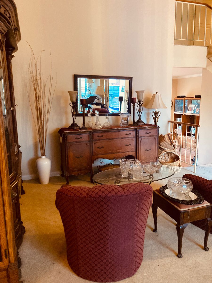 Please bring your own boxes and Manpower! The Home is Packed with an Eclectic Mix of Antique, Vintage and The 90’s! Huge Selection of Christmas, might as well stock up! Huge Selection of Leaded Crystal. Sets of China Dinnerware. Barware. Glasstop Table and Rattan Chairs. Small Round Oak Table and Chairs. Ornate Dining Table and Fancy Chairs . Large China Cabinet. Flatware. Kitchen Gadgets. Selection of Platters and Serving Dishes. Floor and Table Lamps. Huge Selection of Ladies Clothing, Handbags and Shoes. “French Provincial “ Style Vintage Dresser and Lingerie Dresser. Leather Couches. Selection of Glasstop Occassion Tables. Vinyl. Audio....