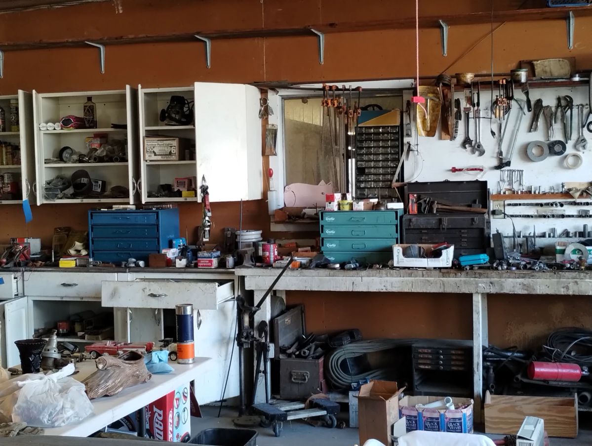 Very large estate sale from an old El cajon family original builders of the house. There's a lot here lots of mid-century furniture all in clean good condition including Kent Coffey and Garrison furniture. The garage is packed there is also an outbuilding that is packed with outdoor equipment including saws wood chipper tillers wood metal shelving metal shelving brackets pallets a pallet jack everything that you can think of. There's also two freezers two refrigerators and a very nice washer and dryer with the stands. Everything you need for a home office it desk and supplies. Lots and lots...