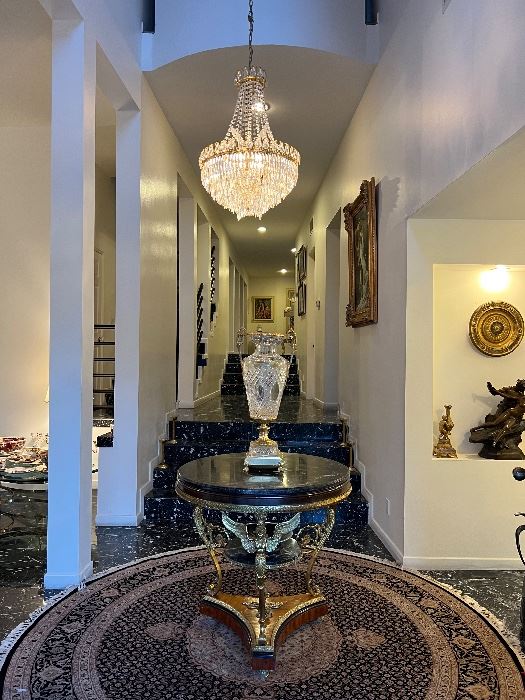 This onsite estate sale boasts a broad range of antique to modern furniture, crystal, porcelain, artwork, chandeliers, rugs, as well as clothing, books, electronics, collectible dolls and cookware. The family amassed a large collection of tea sets, silverware, and an assortment of items ideal for entertaining. Inside this classically designed multi-level modern 80’s contemporary home, some examples of what you will find are: • Classic oil paintings, prints, mirrors. • Antique French salon sets, onyx side and coffee tables, antique tables. • Collections of sterling silver, silver plate. • Bohemian, Waterford, vintage and modern glassware. • Handmade Silk Persian rugs....