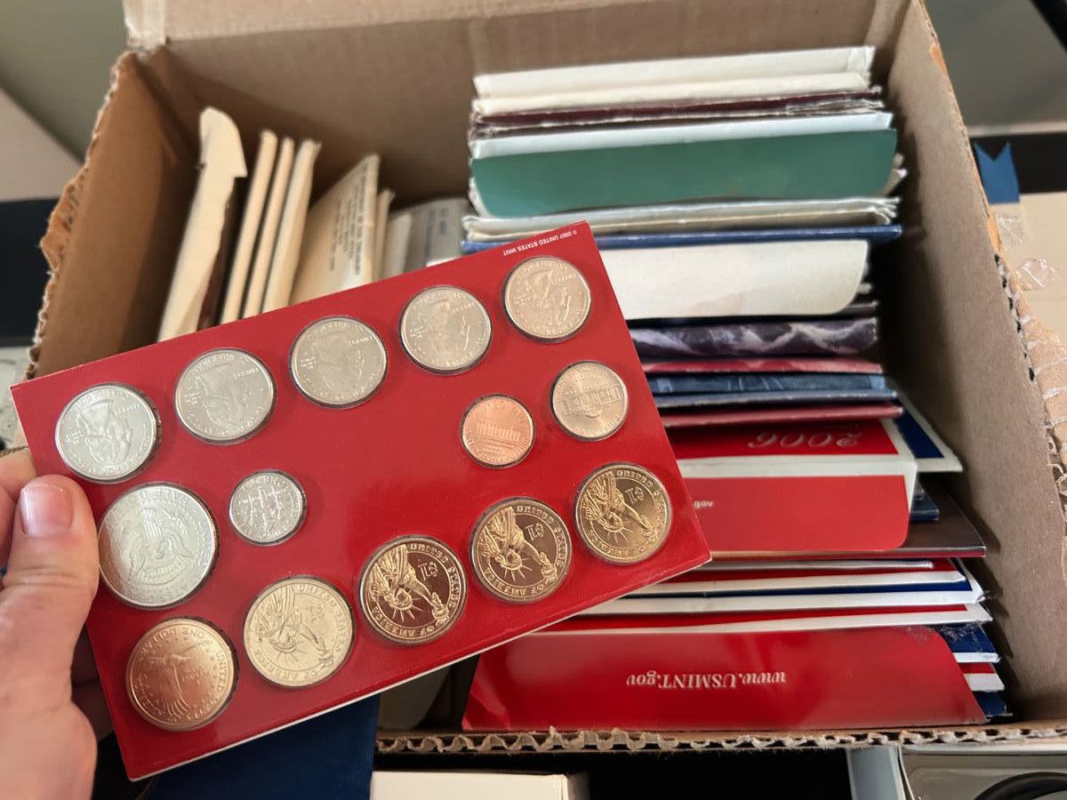 This house is absolutely packed with all the normal stuff, but also TONS of more unique items: Included: Approximately 40 bins full of fabric of all styles/colors, Notions and other related sewing and various hobby/art supplies, Vintage sewing/serger machines with attachments, Craft supplies, costume jewelry, Uncirculated coin sets from the 80's to 2000's (we have lots of them!), La-Z-Boy sofa/sleeper, All kinds of furniture, beds, desks, shelves, etc., Lots of plastic shelves, Tons of kitchenware and small appliances, Vintage knick-knacks, Yard art, Outdoor storage containers for yard implements, etc., Patio tables/umbrellas, Pro-Form treadmill (modern style, with Jillian Michaels "coaching"), Small...
