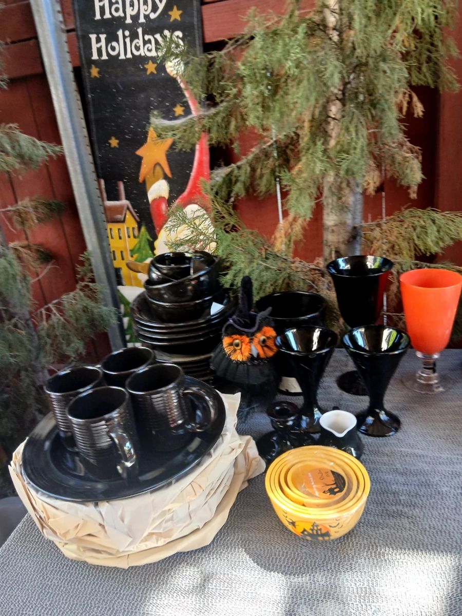 Seasonal decoration sale..... some vintage items a lot of items are NIB ( New in the box ), there is especially a ton of Christmas Holiday items. We also have Home Goods and knick knacks, clothing, men's suits, books, shelving, music equipment, old dolls, gift boxes, wrapping paper, party supplies, sewing stuff, patterns and more....