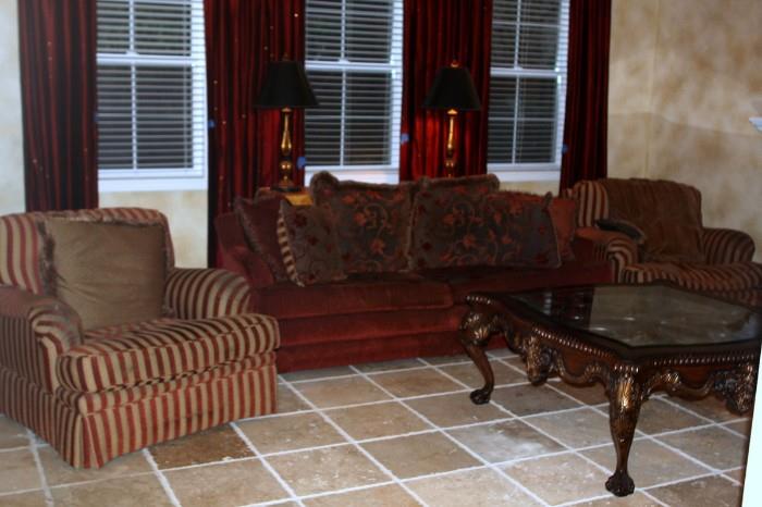 This 4,000 sq. ft. home has some beautiful furnishings you have to have. Along with all the custom draperies that all must go this weekend. Authentic Italian pottery, Sofas, armchairs and Bergere armchairs, Armoires, sideboards (2 matching) - Hooker, Pottery Barn kids sleigh bed w/full size mattress, Henredon hutch (folio twelve collection), Accent tables and coffee tables, Dining chairs, dining table and separate 7ft glass top, Patio furniture - large dining table and chairs, Fireside seating ensemble, two chaise lounges, Children's furnishings and toys, Glassware and kitchen items, Ping Eye Golf clubs, Custom draperies, Huge Italian entrance planter and various...