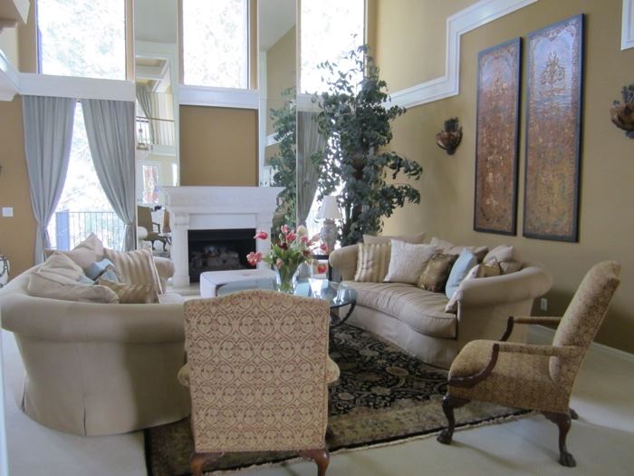 THIS LARGE NELLIE GAIL ESTATE HAS IT ALL! FURNITURE INCLUDES: HENREDON MATCHING LINEN SOFAS. CENTURY MATCHING ELEGANT WOOD & UPHOLSTERED ARMCHAIRS. BAKER GENUINE LEATHER CORNER SECTIONAL SET. ETHAN ALLEN DINING SET, SERVER & CORNER CABINET, LARGE UPHOLSTERED OTTOMAN, UPHOLSTERED ARMCHAIR. POTTERY BARN FARMHOUSE TABLE, 6 CHAIRS & BENCH. LARGE ROUND GLASS TOP COFFEE TABLE. NAUTICA BEDROOM FURNITURE (DRESSER, CHEST, NIGHTSTANDS, 4 POSTER BED, WARDROBE). RATTAN TABLES, ARMCHAIR & OTTOMAN, ROCKER. LOW ENTERTAINMENT CABINET. JENNIFER CONVERTIBLE SOFA. DOUBLE RECLINER SET. CHROME DINER BAR STOOLS WITH RED VINYL UPHOLSTERY. WROUGHT IRON BAR STOOLS. VARIETY OF LIGHTING. LARGE ORNATE WALL PANELS. LARGE STAINED...