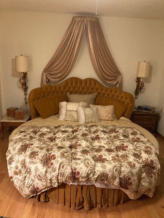 There are two estate sales this week. Both are Thursday & Friday From 10:00am to 2:00pm. Both in same gate area in Laguna Woods. Sale # 1. Estate of Hollywood Window Dresser for Major Department Stores in the 60’s/70’s.This estate holds many collections. The furniture is very unique Hollywood Regency which includes a Rare "Round" Velvet Bed to a Cut Velvet sofa, a mother of pearl shell top dining table with wrought iron base, a curio cabinet and 6 foot long coffee table, just to name a few furniture pieces. Marge Carson Club Chairs. Alabaster Table Lamps. Large Satinwood breakfront...
