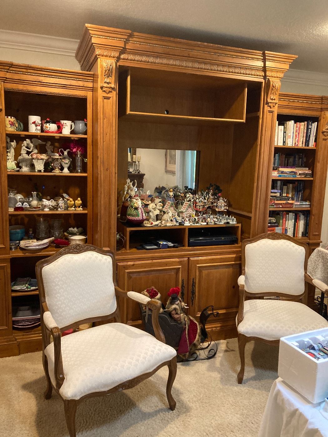 This Sale Has Something For Everyone. It is full from floor to ceiling with collectibles, great clothing, kitchen, house misc. and furniture. Outstanding Ethan Allen Wall Unit, Matching Wood Framed Armchairs, Lighted China Cabinet, Oak Sideboard, Oval Dining Table With 6 Chairs, Ridgeway Oak Grandfather Clock, Small Painted Cabinets, Hall Tree, Computer Desk, Mahogany Secretary, Shelving, Bamboo Etagere Bookcase, Attractive Electric Fireplace/ Heater, Decorator Mirrors, Drexel Queen 4 Poster Bed & Nightstands, Jewelry Stand, Lighting. Collectibles Include: Royal Doulton Figurines, Hummels, Art Glass, Cranberry Glass, Asian Earthenware figures, Cloisonné, Asian Silk embroidery. European Figurines, Cup & Saucers. Perfume Bottles, Disney,...