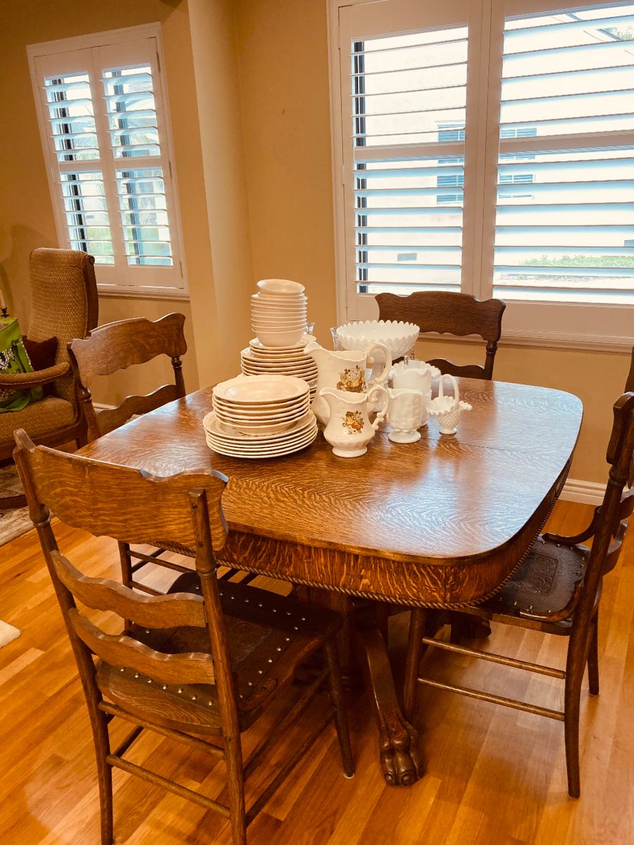 Antique Cabinets. Antique Oak Table and Chairs. Dinnerware. Milk glass. Sofa. Pair of Recliners. Table and Floor Lamps. Queen Size Bedframes. Victorian Style Lamps. Collection of Hummel Figurines and Plates. Xmas Tree. Kitchen is Full. Crock pot. Baking Pans. Craftsman Work Table. Tubs of Christmas Decorations. Vintage China Cabinet. Large Rubbermaid Outdoor Storage. Golf Clubs. Metal Glider. Mission Style Dressers. Books. Large Copper Container. Really Nice Office Chairs. Area Rugs and more! Please check out the sale! Thank you! 👯♀️😎