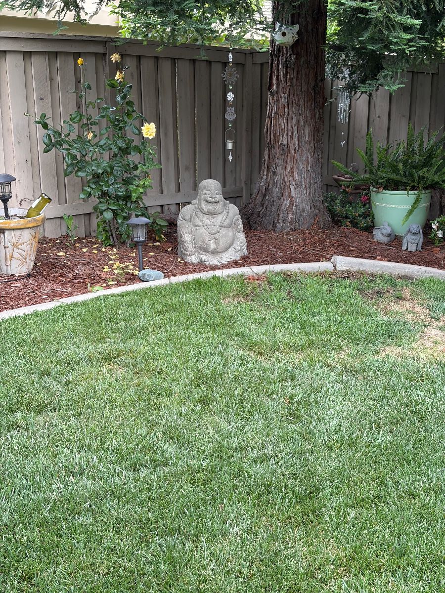 Yard art and beautiful potted plants