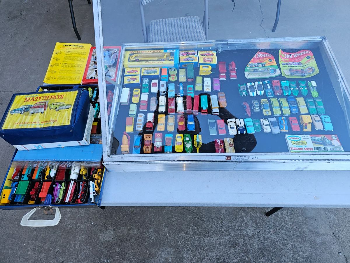 LOTS OF COLLECTABLES!!! PLEASE SEE PICTURES FOR FULL INVENTORY.BUT JUST TO GIVE YOU AN IDEA WE HAVE. LOTS!!! OF HO MODEL TRAINS LOCOMOTIVES AND CARS.. COLLECTABLE HOTWHEELS, MATCH BOX, CORGI,AND OTHER CARS TONS!!! OF BASEBALL, BASKETBALL, FOOTBALL CARDS LOTS OF SPORTS SIGNED MEMROBILLIA AND PICTURES, BOBBLE HEADS ETC. VINTAGE KOOLAID PACKS ( LOTS) TONS!!! OF DEPARTMENT 56 HOUSES/FIGURES NEW IN BOX COLLECTABLE LIGHT HOUSE FIGURES NEW IN BOX LOTS OF JEWELERY POCKET KNIFES, WATCHES LOTS OF BRAND NEW WITH TAGS NORTH FACE CLOTHING VINTAGE TSHIRTS, GOLF CLOTHING NEW AND USED ELECTRONIS, RADIOS, TVS, ETC. WILLIES BOAT WITH TRAILER AND HONDA...