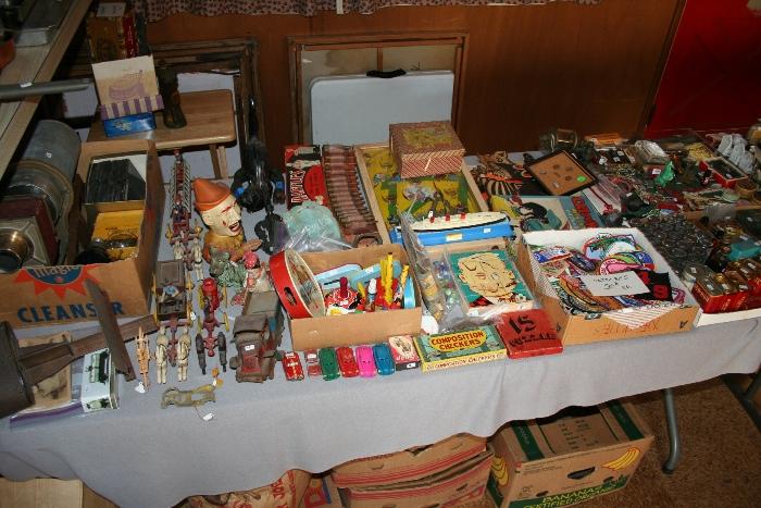 Lomita House and garage of three generations of crafters, blacksmith, quilter, teacher and collectors, Includes but not limited to: Collections include : Victorian mustache cups, vintage trays, pins, patches, tins, at least 5 trains- (Lionel, Marx, American Flyer) and train accessories, reproduction cast iron toys, lantern slide projector and slides. Crystal ware quilting fabric, quilts, crafter supplies, Coca-Cola trays, old games, old books, miniatures, metal/ porcelain, vintage perfume bottles. 1984 Olympic pins and other Olympic items. Roomful of Santa’s, depression glass, art glass, pottery ware, vintage ephemera, hand painted plates, linens, collectors stamps, Girl Scout items, vintage bottles, lathe and...