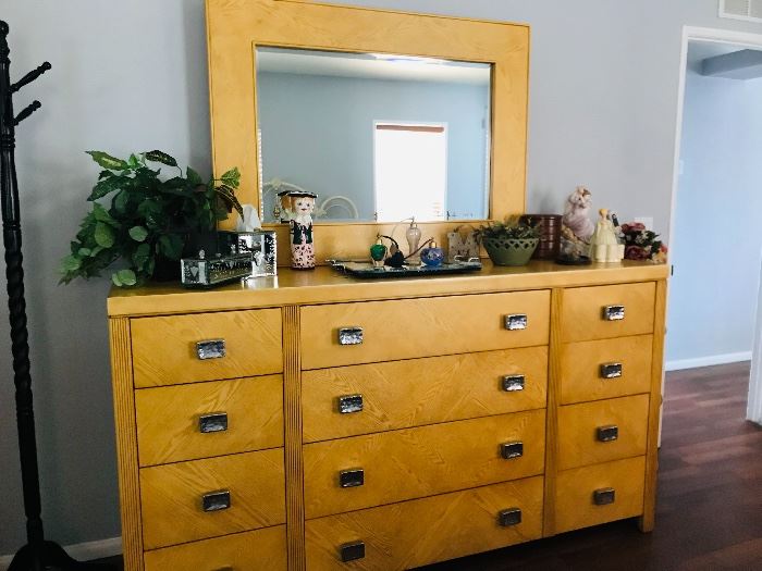 Home Full of Wonderful Furniture. Vintage Selection of Nagel Serigraphs. Two Framed Henri Plisson Prints. Cushman Wakefield Style Dresser. Round Glasstop Dining Table and Chairs. White Iron Queen Size Bedframe. Bedding. Nice Selection of Occassion Tables. Kitchen Gadgets. Set of Bamboo Table Trays. Small Exercise Bike. Boxes of Christmas. Antique Oak Dresser. Leather Couches. Office Desk. Office Chair and desk Supplies. Lounge Chair. Table Lamps. Resin Statuary. Patio Table and Chairs. Selection of Collector Plates-Red Skelton. Flat Screen Tv. Beautiful Grandfather Clock and more! Please come out to the sale! Thank you!