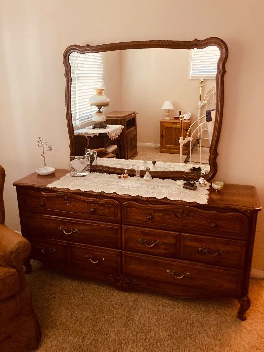 Vintage Glassware. Curved Glass Front Antique China Cabinet Linens. Dresser. Vintage Tea Cups. Men’s and Women’s Clothing.
