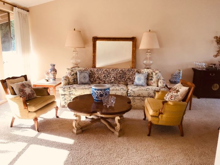 Lovely Selection of Vintage Drexel, Henredon and French Provincial Style Furnishings And Decor! Regulation Size Vintage Pool Table and Cues. Perfect Condition. Lovely Selection of Vintage Drexel Dressers, Oval Drexel Dining Table and Chairs. Henredon Vintage Asian Style Buffet. Beautiful Selection of Occassion Tables. Assorted Mixed Metal Home Decor. Framed Artwork. Vintage Style Leather “like” Long Sofa (missing one cushion) French Provincial Style Curio Cabinet, Corner Table and Bedframe. Queen Size Bedframe. Assorted Linens. Tall Metal Easel. Upright Piano. Vintage Floral Couch. Pair of Beautiful Glass Base Table Lamps. Assorted Ceramic Table Lamps. Kitchen Gadgets. Set of Lenox Dinnerware. Red...