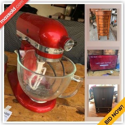 WHAT IS IN THIS AUCTION? This online auction features collectibles such as silver plate, sterling silver, and Limoges, electric folding scooter wheelchair, furniture such as pine dining table, art such as framed posters, and framed prints, electronics such as 40” Roku Smart TV, Beats by Dre speakers, Yamaha speakers, and Kenwood turntable, small kitchen appliances, jewelry such as sterling silver, jade, and costume jewelry, books, accessories, glassware, dishware, kitchenware, power tools such as Ryobi miter saw, planters, outdoor decor, CDs, records, home decor, small home appliances and much more! HOW TO ACCESS THE AUCTION? Simply click here: MaxSold TO BID...
