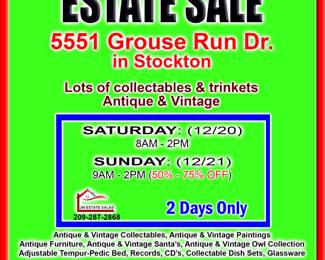 Dec. 20 - Incredible Holiday Collectible Estate Auction. 203 Lots. Ends Saturday 3p to 7p. Pick up S