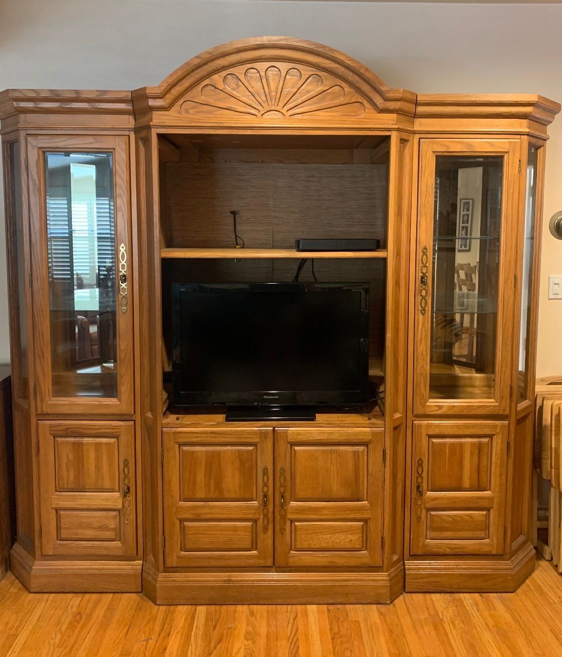 Furniture - fold-out server buffet, oak entertainment center, oak china cabinet, leather sofa, console table, hall tree, patio furniture