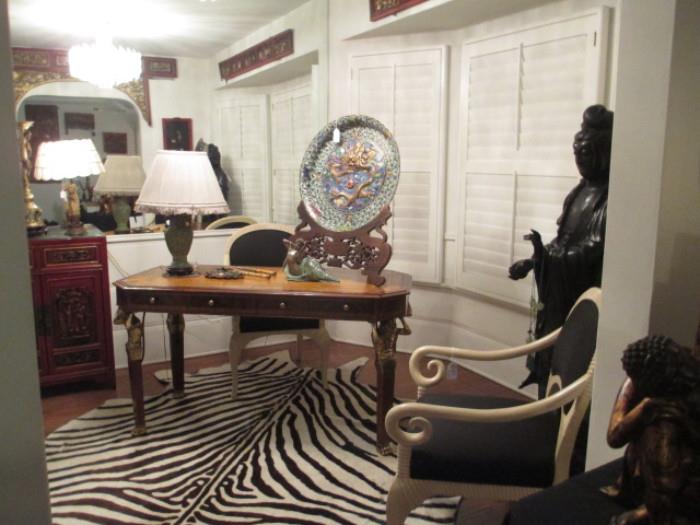 * TOLUCA LAKE ESTATE SALE* OVER THE TOP ASIAN COLLECTION--This House is stuffed to the Rafters! Wall-to-wall, Floor-to-ceiling....Bob LOVED to collect and he loved Everything Asian! 18th Century to Vintage/20th century, this is a very nicely curated collection---hundreds and hundreds of items! Chinese and Japanese Porcelain, Japanese and Chinese Bronzes, Antique carvings, Gilt-bronze carvings, Quan-Yin, Hotei, Lohans, Jade, Lapis, Agate, Jadeite, Malachite, Amethyst, Bowenite, Marble, Cinnabar, Lacquer, Rosewood, Boxwood, Elm, Amber, Rock Crystal, Rose Quartz, framed Antique Embroideries, Forbidden Stitch, Sleeve Bands and Robe segments, Snuff Bottle Collection, Art work, Decorative Art, Satsuma, Cloisonne, Champlove Cloisonne, Spirit Screens, Peking Glass,...
