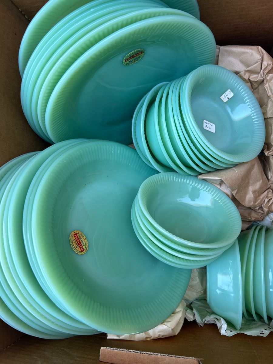 Fire King Jade-it Blue Fire King Ivory Fire King Hazel Atlas Fostoria Bauer Lace Quilting Hankies Glass Antiques Linens Dishes Vintage Sewing Thread Books Silverware Dept 56 Christmas DVD Electronics Celluloid Calico Towels/Blankets Charles Dickens Handmade Items Camping Furniture Hoosier With all of its Guts Trunks Buttons Vintage Juice Glasses Crafting Supplies Art Supplies Flash lights Clothing Batteries Tons of water and food Toilet Paper & Baby Wipes Baskets Butane Prepper Supplies Salt N Peppers Fenton