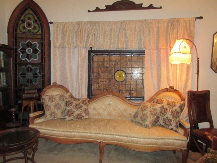 FANTASTIC selection of Antiques and Collectibles....Oxnard Estate of probate attorney and collector extraordinaire~~~~~~~~ Sherman had wonderful taste and the means to indulge himself...and he did! This 4 bedroom townhome is jam packed with wonderful treasures. Art Nouveau, Aesthetic, Victorian, French, stained glass, Art....there is a wonderful selection of Quality merchandise to choose from.... FURNITURE: there is a VAST selection of Art Nouveau, Victorian, Aesthetic and traditional--all Quality merchandise. STAINED GLASS Collection, Victorian brass entrance mirror w/oil lighting (all original), Rosewood 8' sofa, French fall-front desk, Victorian and Aesthetic bookcase/cabinets, Marble-top cabinets, Victorian hall-tree/entrance piece, (many) carved hanging shelves/mirrors, (many) stacking...