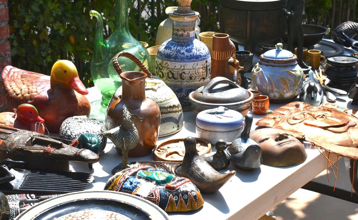 Estate 65 year Accumulation (photos more description will be added daily) Hollywood Producer Estate - a family that entertained a lot! Friday and Saturday 9:30am-2pm Sun 9:30am- 12:30pm (1/2 price ) • Art: Oils, prints, masks, metal & porcelain figurines •Silverware: Hotel size serving trays & serving pieces, flatware, 1960s Espresso Machine •China Sets & Serving Pieces: French, German, Crate & Barrel new boxes, teapots, trays •Crystal: Vases, barware, Mikasa Park Lane wine glasses new in boxes, cut crystal stemware, ice buckets, art glass, Waterford, Orrefors, Baccarat, •By appt for Baker Furniture Chinese style Secretary, huge bakers rack. Many lamps....