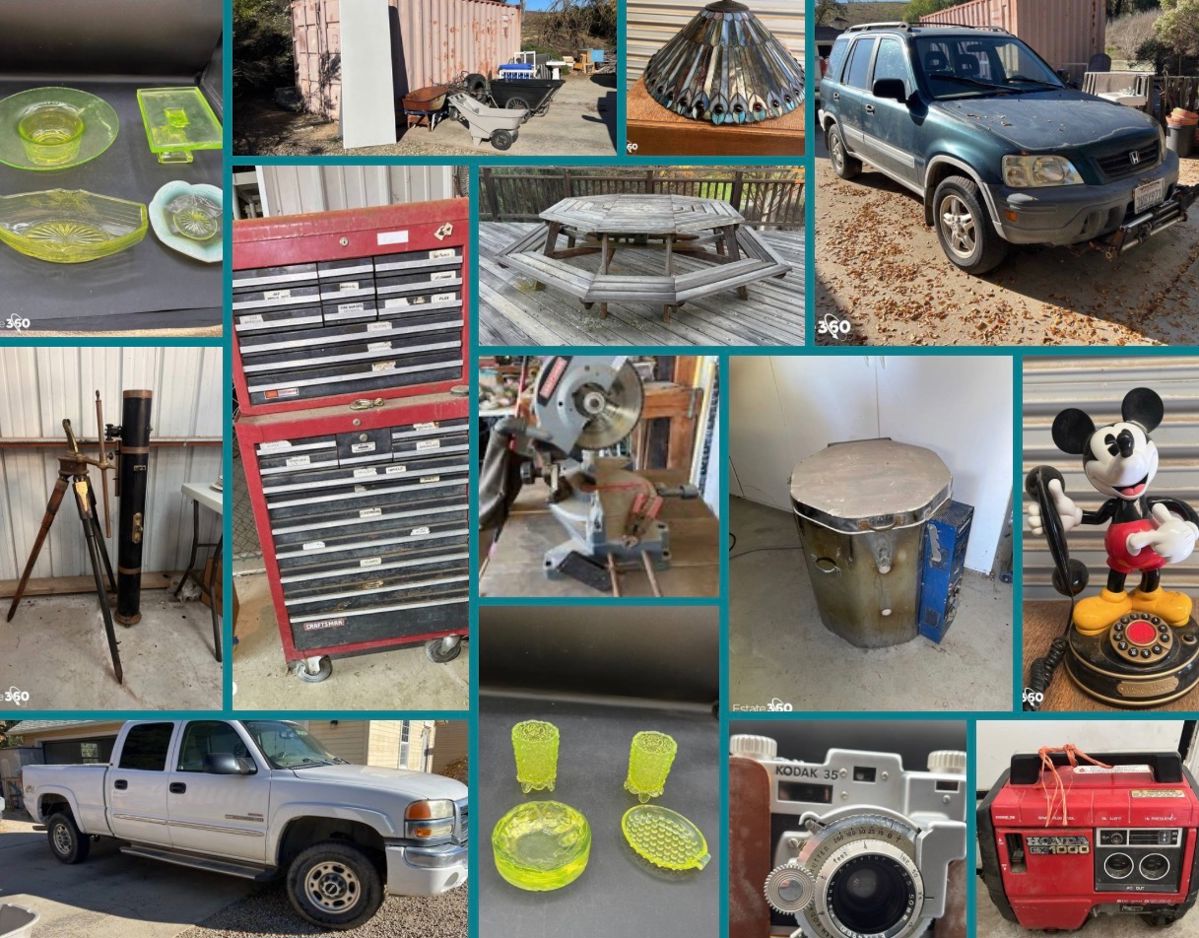 ESTATE SALE IN PASO ROBLES, CA BIDDING NOW! Sat, December 13 - Sat, December 20 Location: Paso Robles, CA # of Items: 538 Estate Sale Company in San Luis Obispo County Estate 360® Estate Sales & Downsizing Estate Sale in Paso Robles, CA Estate Sale Features: Quality Home Furnishings, 2005 GMC Sierra 2500HD DuraMax Diesel, 1997 Honda CR-V, Antique French Art Nouveau Cast Metal Mirror, Vintage Cameras And Photography Gear, Vintage Uranium Glass, Patio Furniture & Garden Decor, Terracotta Garden Pots, Vintage Reverse Painted Chinese Snuff Bottle, Vintage Peruvian Folk Art Chulucanas Terracotta Figurines, Vintage Minolta SRT-102 & X-700 Cameras,...