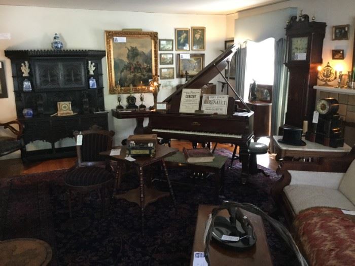 ON-PREMISE ESTATE SALE IN PIEDMONT A rare opportunity to see heirlooms in the original family home for over 95 years. Eclectic mix of antique furniture for every room from the 18thC to the 1940s. English, French, American Empire, Victorian, Deco and Craftsman furniture, Sideboards, curved glass china cabinets, Victorian Parlor: sofas, chairs, tables, dressers and armoire, Baby Grand piano, Victorian Pump organ, Glass front bookcases, sheet music cabinets, Lawyer's stacking bookcases, Game tables,, Victrola w/records, Persian and Chinese carpets, 15 wall, mantle and tall case clocks, Fine china, crystal, Sterling, pottery,bronzes, artwork, mirrors, Old radios and scales, Brass National cash...