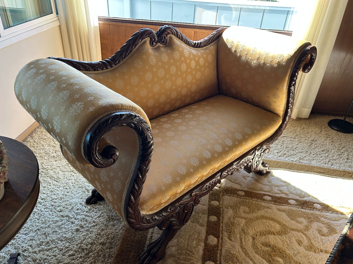 ✨ Mid-Century Modern Estate Sale | Coastal + Vintage Glam ✨ Nearly 3,000 sq. ft. filled with antiques, vintage charm & quality furnishings. 🛋️ Living Areas Assortment of antique and vintage furniture, Ornate gilt-metal & glass coffee table with matching settee, Vintage lamps and decorative accent pieces, Vintage sailfish wall art, Antique desk & embroidered accent chair, Beautiful carved detail upright piano, Edison phonograph, Display cabinet and marble top accent furniture, Stunning gold mirror & artwork, 🍽️ Kitchen & Dining Oversized carved Victorian hutch, 3 vintage wooden & leather barstools, Dining table with bench seating, Entertaining pieces, cast iron cookware,...