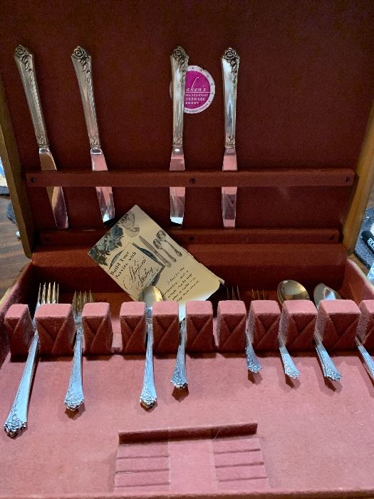 Sterling Silver Flatware Set Jewelry Princess house Artistic Potter Co. Lenox Limited Edition Thomas Kinkade Plates Original Art “Half Way House” Seyei Fine China Trousseau #3173 Silk Thread Oriental Tapestry Lusterware plates China Tea Cup set ( mismatched for fun tea party) Hand Painted Kutani Blue Danube Fine China Set Indies Plate set Vintage Corelle Farberware English Garden Set Pyrex Oneida Crystal Vase Crystal Dining Table Housewares/Pots/Pans/ Small Appliances Sideboards Singer Seeing Machine Brother Seeing Machine vintage sewing patterns material Vintage lace Dress Vintage Ladies hats Vintage Boy Scouts clothes/shoes Linens Quilts games office Craftsman Lawnmower Camping Christmas small tools...