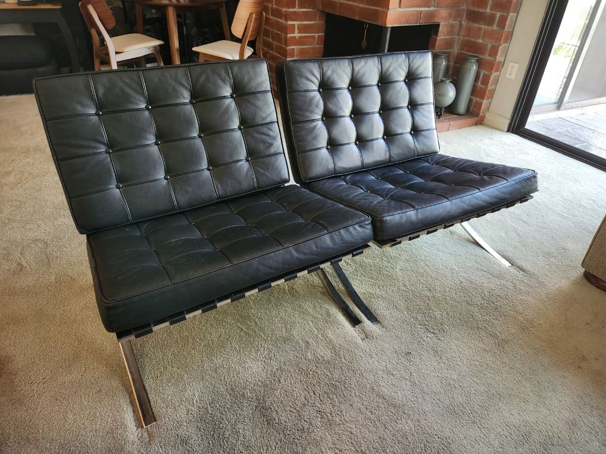 Nice sale with beautiful furnishings! Mid Century Modern furniture includes, pair of Barcelona chairs, modular shelving unit, Mid Century Ekornes lounge chair, and more! Other furniture includes, Vintage Asian Rosewood dining table and chairs, MCM style console, Asian style coffee table and sofa table, black Asian style nesting tables, MCM style table and chairs (new, 2 months old!), end tables, 2 very nice matching sofas, new (2 months old) Modern style twin bed, pair of black silk ottomans, Asian screen, beautiful chaise lounge, nesting tables, and more! There is also a lot of contemporary decor, vases, dishes, Asian accents, Asian/Thailand...