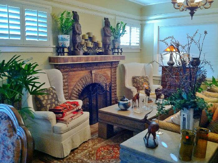 Quality living room, dining room, and bedroom furniture by Bernhardt, Lexington, Amini and Fairmont Designs. Antiques and collectibles including: 19th Century cherry hutch, butler desk, gate leg table, plank bottom chairs, work table, 1920s oriental cabinet with porcelain panels, oriental apothacary chest, granite buddha bust, Indian pottery, baskets and blankets, 1951 Olaf Wieghorst watercolor and signed prints, James Regimbal bronze, 1908 Remington artist proof set, china, silver,waterford, Royal Doulton figurines, jewelry, flat screen T.V.s, Tempur-pedic mattress, kitchen, men and womens clothing, very large amount of plants, decorative pots and self-watering planters, Danbury mint gold collection Christmas ornaments, Nice selection of...