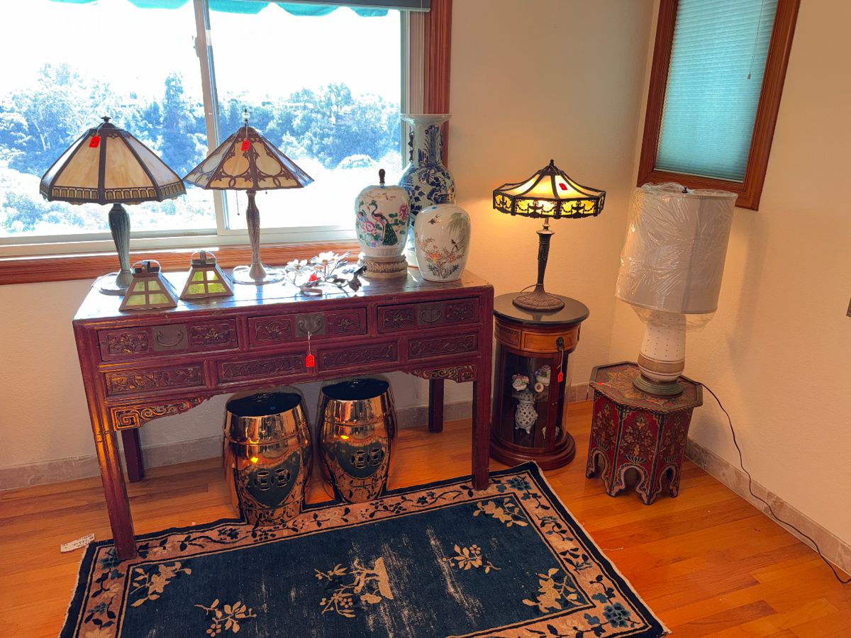 3 story canyon home in Talmadge with quality furnishings…all must be sold. Owner was an executive at Qualcomm back in the day. Bombay Co furniture, master bed room set, antique rugs - Chinese and Middle Eastern…antique slag glass lamps, gold flower drum stools, table lamps, many beautiful coffee table books priced at $5.00 each, RIDGEWAY GRANDFATHER CLOCK,great collection of shells, kitchen items, dish set, unusual knickknacks, roll top desk, and a garage full of miscellaneous items … Clothing-reads like a list from Rodeo Drive- petit sizes - Ann Taylor,St.John, Buhman, Lafayette 148; lots of shoes Stuart Weismann,Ferragamo, Stuart Weitzman, Cole...
