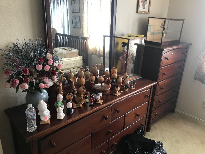 Pots and pans, Kitchenware, Vintage clothes, Oriental art, Bedroom sets, Full and queen beds, Partitions, Couch, Recliner chair, Loveseat, Art, Dining room table and chairs, China hutch, Bookcases, Twin bed, Desk, Cabinets, Shoes, Shed items, Some yard art, Microwave oven, Lamps, and Tons of Fabric! And So Much More!!